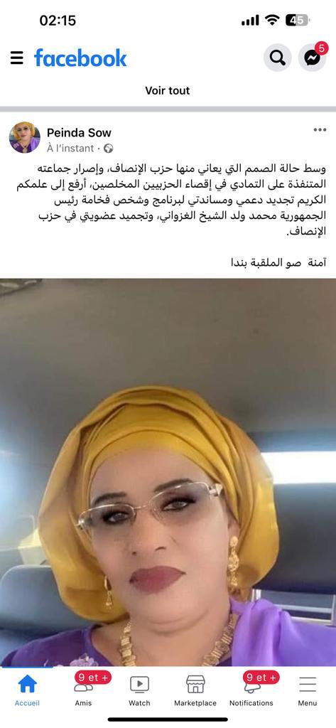 وأكدت القيادية في تدوينة لها على حسابها في الفيسبوك، تجديد دعمها ومساندتها لبرامج فخامة رئيس الجمهورية. السيد محمد ولد الشيخ الغزواني.
