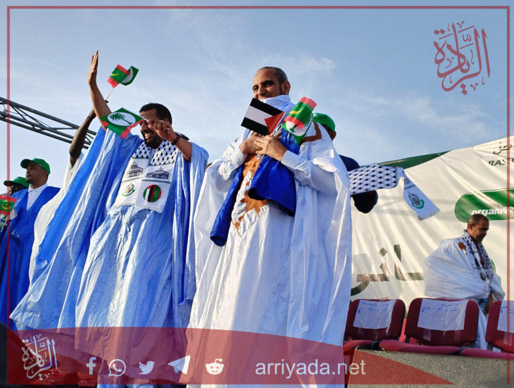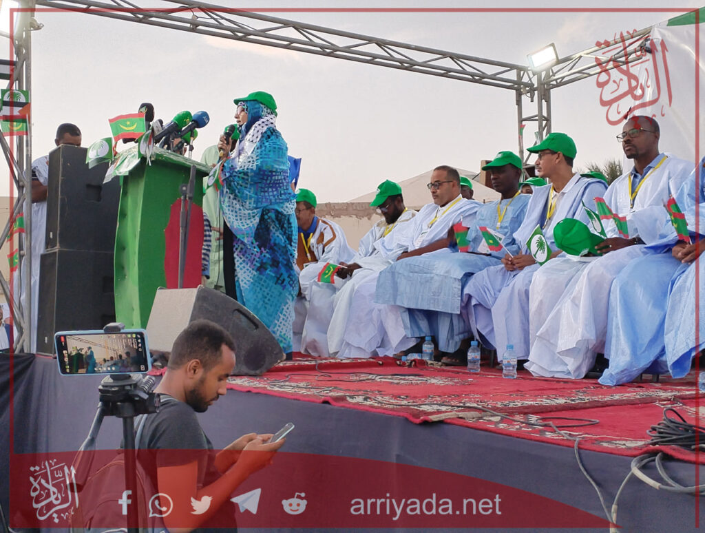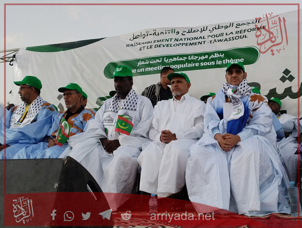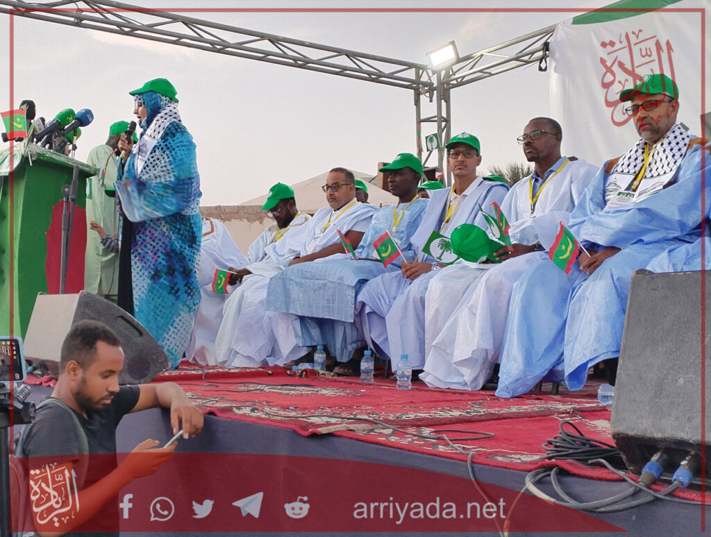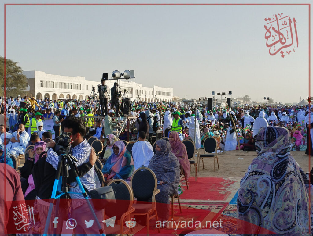 الريادة: نظم حزب التجمع الوطني للإصلاح والتنمية “تواصل” مساء اليوم السبت مهرجانا جماهيريا في الساحة الواقعة بين مقاطعتي الميناء وعرفات في ولاية نواكشوط الجنوبية المعروفة اختصارا “بالمعرض”، حيث غصت الساحة بجماهير الحزب وانصاره .