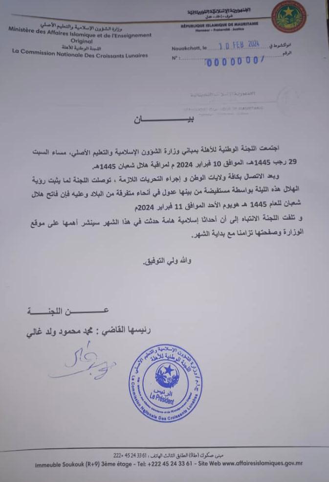 جاء ذلك بعد اجتماع عقدته اللجنة، مساء اليوم السبت بمباني وزارة الشؤون الإسلامية والتعليم الأصلي في نواكشوط.