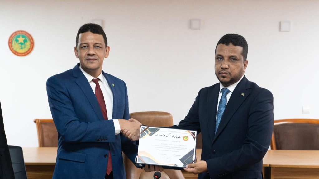 الريادة : نظمت وزارة التحول الرقمي وعصرنة الإدارة، اليوم الثلاثاء، حفل تكريم بمناسبة انتهاء مهام كل من المراقب المالي محمد مختار محمد محمود الوافي، والمسدد أبوبكر لمرابط.