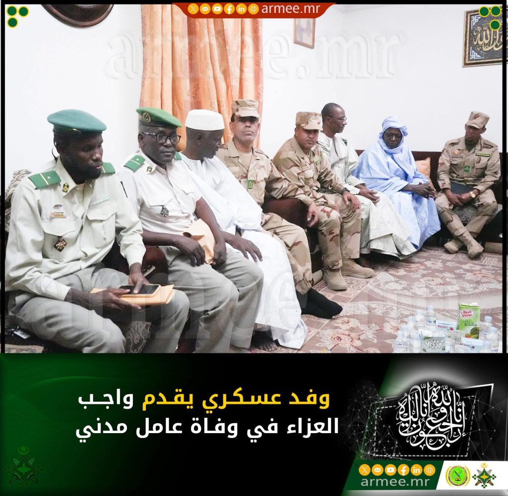 قام وفد عسكري برئاسة العقيد محمد الأمين شيخنا سيدي عبدالله، مدير الشؤون الاجتماعية بالأركان العامة للجيوش، بزيارة تعزية ومواساة لأسرة العامل المدني عمر سيدي جنگ، التابع لكتيبة القيادة والخدمات، والذي توفي يوم 20 أبريل 2026 إثر وعكة صحية مفاجئة.