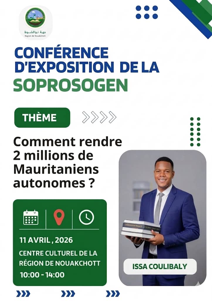 Arriyada : À Nouakchott et à la salle des conférences de la région de Nouakchott qu’a eu lieu le lancement de la SOPROSOGEM (Socle au progrès social pour une génération nouvelle), ce projet initié par un jeune mauritanien ambitieux qui répond au nom de: Issa Coulibaly et son staff ont présenté la SOPROSOGEM qui a pour but d’autonomiser des milliers de jeunes mauritaniens.